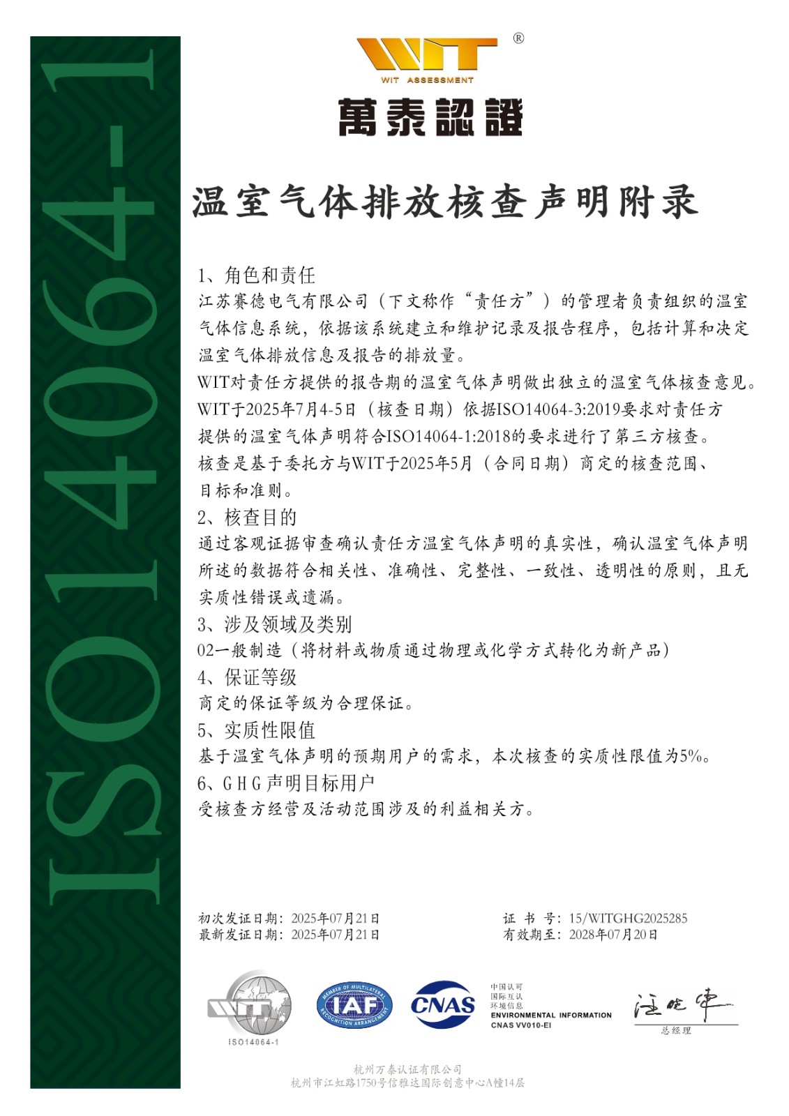 公司获得碳核查报告